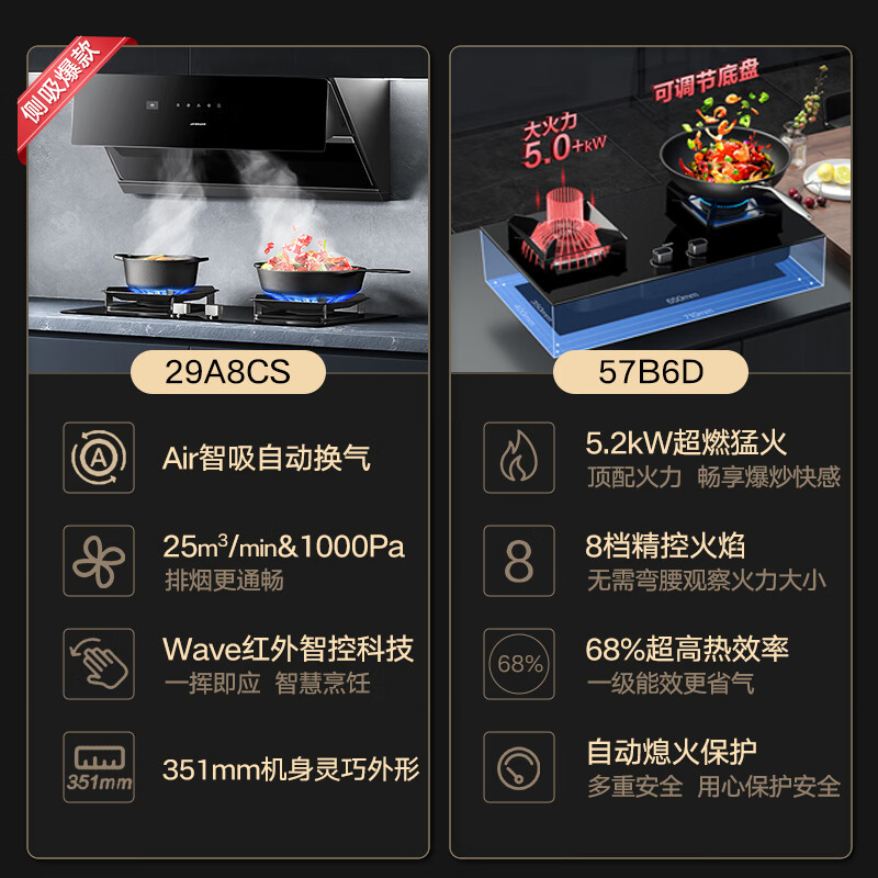 老板(Robam)探索家A8CS 25大风量抽油烟机15套洗碗机嵌入式独立式两用厨房多件套29A8CS+57B6DT+F80D黑价格:10098.00元!