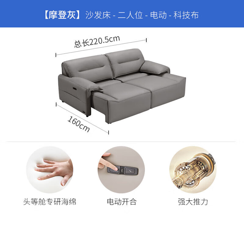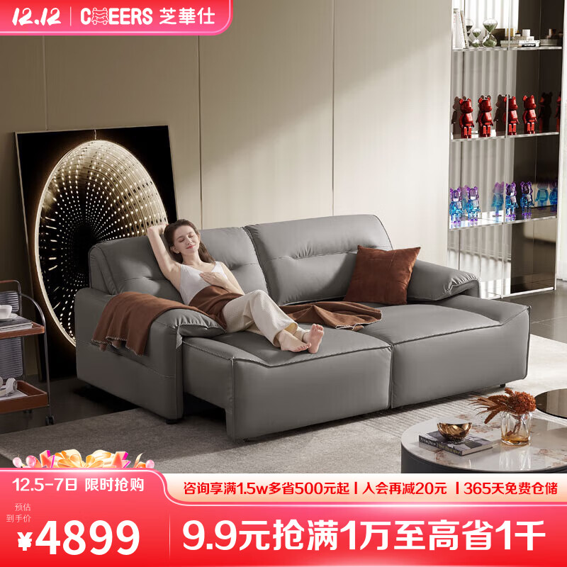 芝华仕(CHEERS)头等舱科技布沙发电动功能多功能两用伸缩沙发床 40272 双人位灰价格:4899.00元!