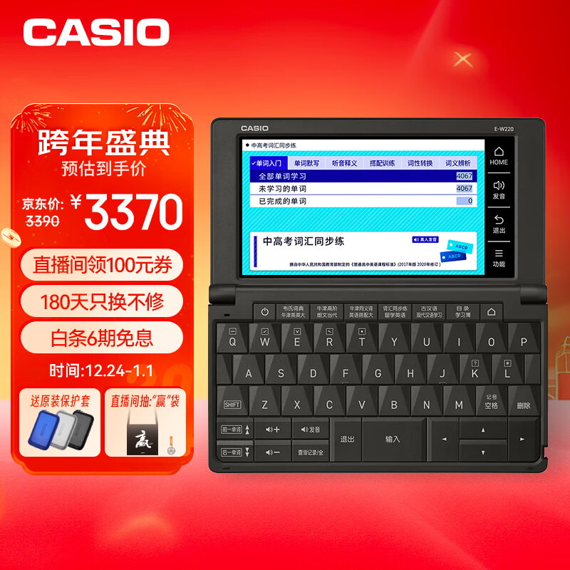卡西欧(CASIO)电子辞典 E-W220BK 英汉辞典、留学、水墨黑价格:3390.00元!