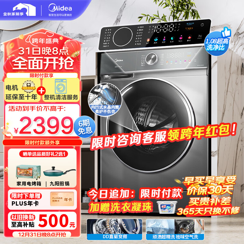 美的(Midea)滚筒洗衣机洗烘一体 全自动 DD直驱变频电机 香薰洗 顽渍超精洗 新风袪味 初见系列MD100V650DE价格:2399.00元!