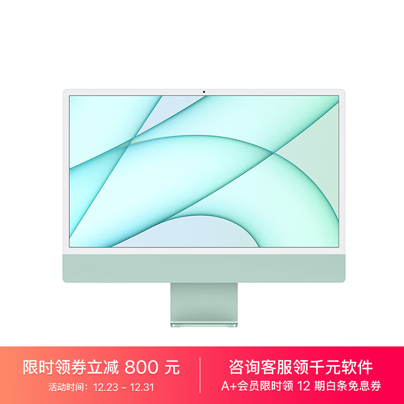 Apple iMac 24英寸 绿色 4.5K屏 八核M1芯片(8核图形处理器) 8G 256G SSD 一体式电脑主机 MGPH3CH/A价格:11499.00元!