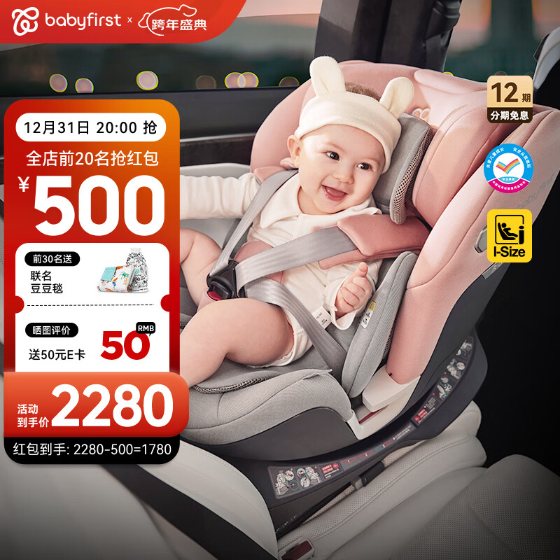 宝贝(Babyfirst)灵悦婴儿童座椅汽车用0-4-7岁360度旋转i-Size 流光粉R153B价格:2680.00元!