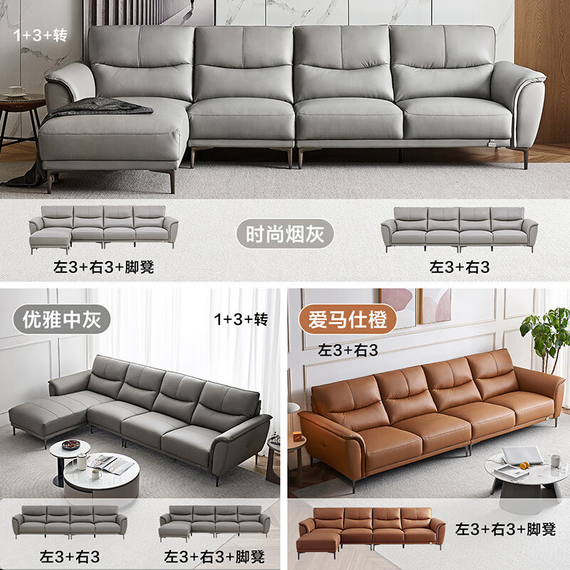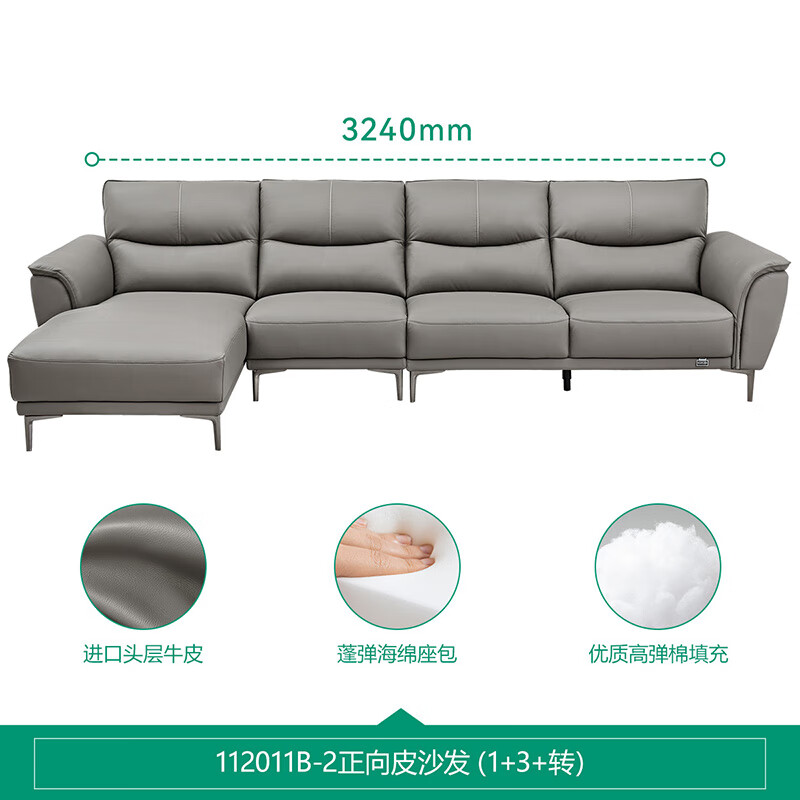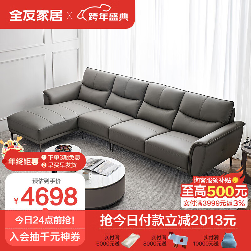 全友家居 简约头层牛皮沙发金属脚饱满座靠真皮沙发客厅家具112011B价格:6711.37元!
