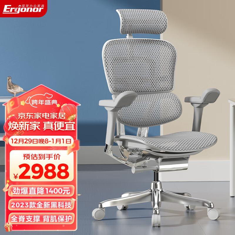 保友办公家具(Ergonor)金豪e 2代高端人体工学椅电脑椅办公椅电竞椅 银白(Q4.0)美国网价格:4388.00元!