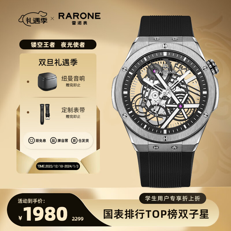 雷诺(RARONE)双子星·X时轮全景镂空机械表夜光国表品牌男士新年礼物腕表价格:2260.00元!