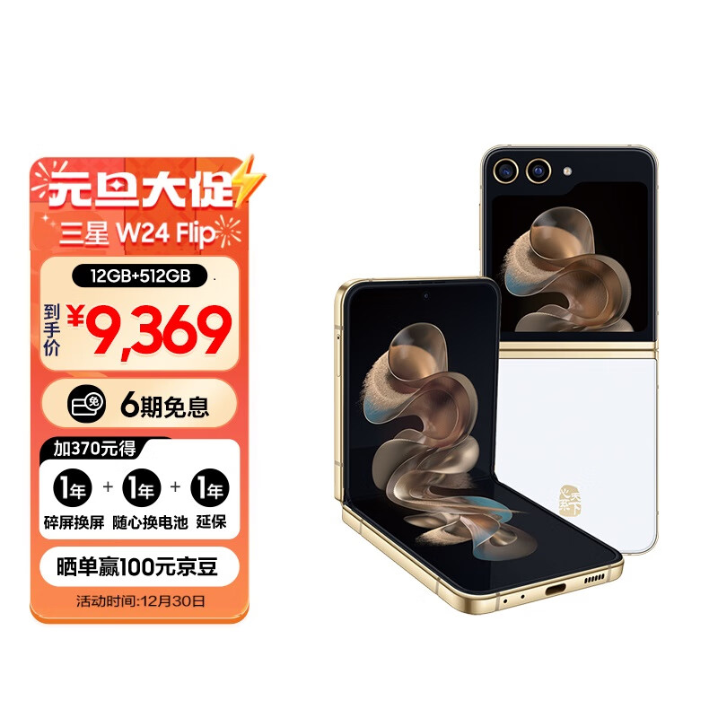 三星 SAMSUNG W24 Flip 12GB+512GB 冰瓷白 大视野智能外屏 掌心折叠 立式自由拍摄 5G折叠屏手机【服务】价格:9369.00元!