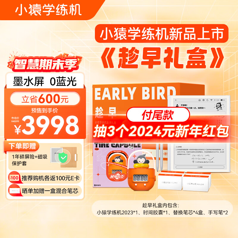 小猿学练机 旗舰款 教材同步练 AI错题本 墨水屏学习平板 猿辅导学习机 小猿智能练习本S2价格:3998.00元!