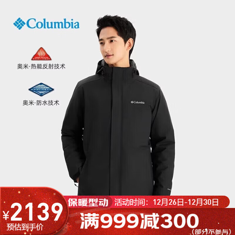Columbia哥伦比亚三合一男23秋冬新热能防水700蓬羽绒外套XE1504 010 XXL价格:2559.00元!