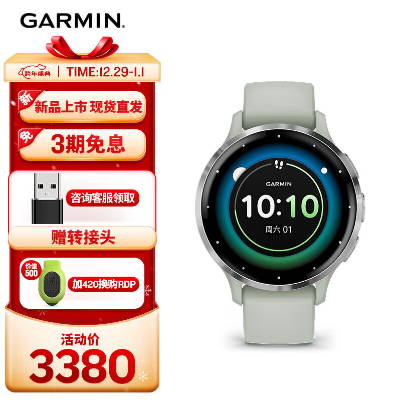 佳明(GARMIN)Venu3S烟柳绿心率脉搏血氧跑步骑行游泳健身时尚运动智能手表价格:3380.00元!