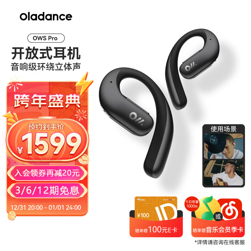 OladanceOWS Pro 全开放式耳机(含充电仓)无线蓝牙不入耳防漏音运动耳机超长续航【ola小月牙】 沉静雾黑价格:1899.00元!