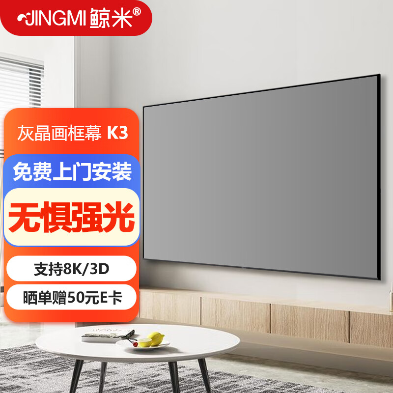 鲸米(JINGMI)投影幕布200英寸16:9超窄边画框幕布K3灰晶光学抗光幕布家用办公影院4K壁挂投影仪屏幕价格:4188.00元!