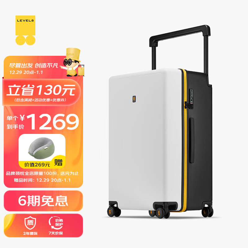 地平线8号(LEVEL8)行李箱男女密码拉杆箱 大旅行家大容量26英寸宽拉杆PC箱 黑白撞色价格:1399.00元!