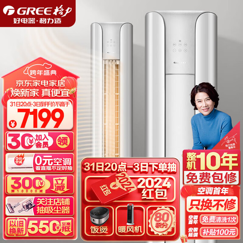 格力(GREE)空调 京东小家智能生态 3匹 云颜 新1级能效 客厅空调立式空调柜机KFR-72LW/NhPa1BAj价格:7199.00元!