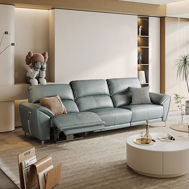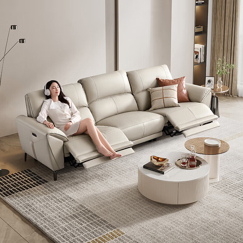 3、沙发非常大气,真皮好打理,非常舒适。有了功能沙发,再也不用把脚搭在茶几上了。