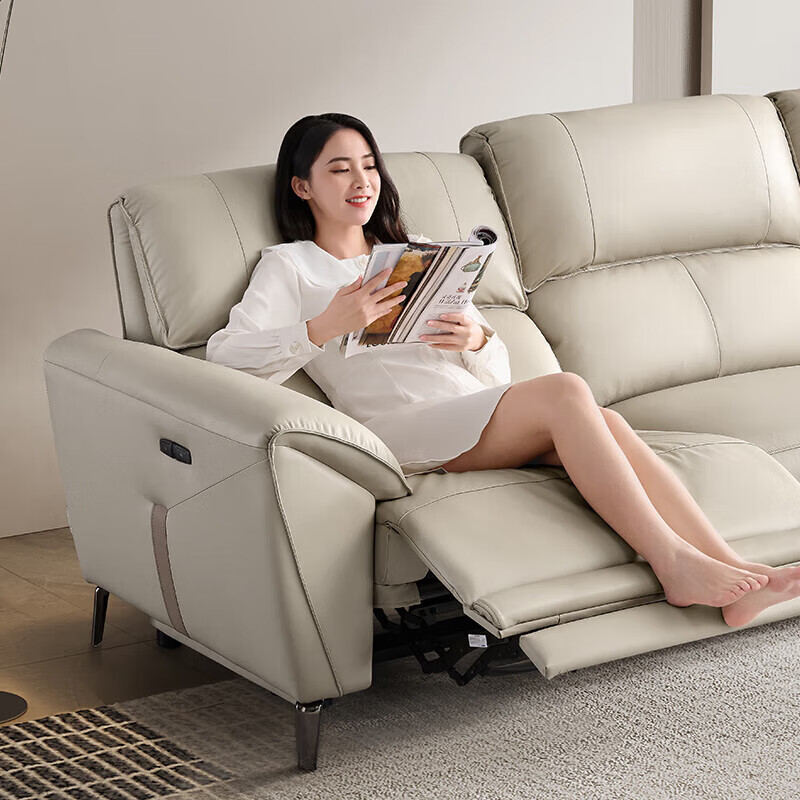 芝华仕(CHEERS)头等舱皮艺沙发现代简约电动功能客厅直排客厅 50953 棉白色四人价格:7199.00元!
