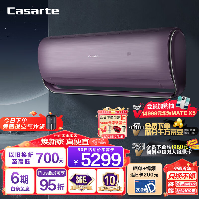 卡萨帝(Casarte)1.5匹 云鼎 双子极光 双循环软风 新一级变频 壁挂式空调挂机 CAS351UEA(81)U1 以旧换新价格:5299.00元!