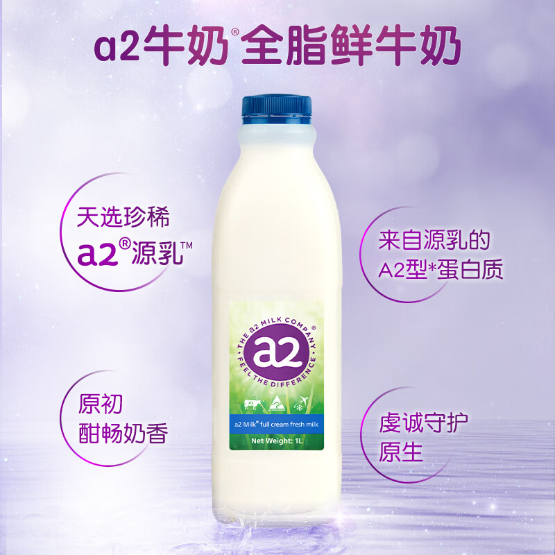 2、A2牛奶在京东上购买特别划算,价格便宜,性价比很高!买二送一yyds,两瓶全脂送1瓶低脂的。全脂更好喝,奶味香浓,入口醇厚,特别丝滑。推荐购买!不过日期不是很好,这点希望改进吧!!!