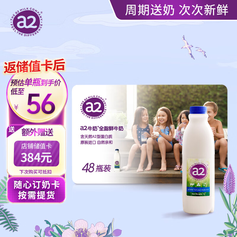 a2牛奶【礼券】 全脂儿童鲜牛奶1L*48 随心订 按需提货 源头直发价格:3072.00元!