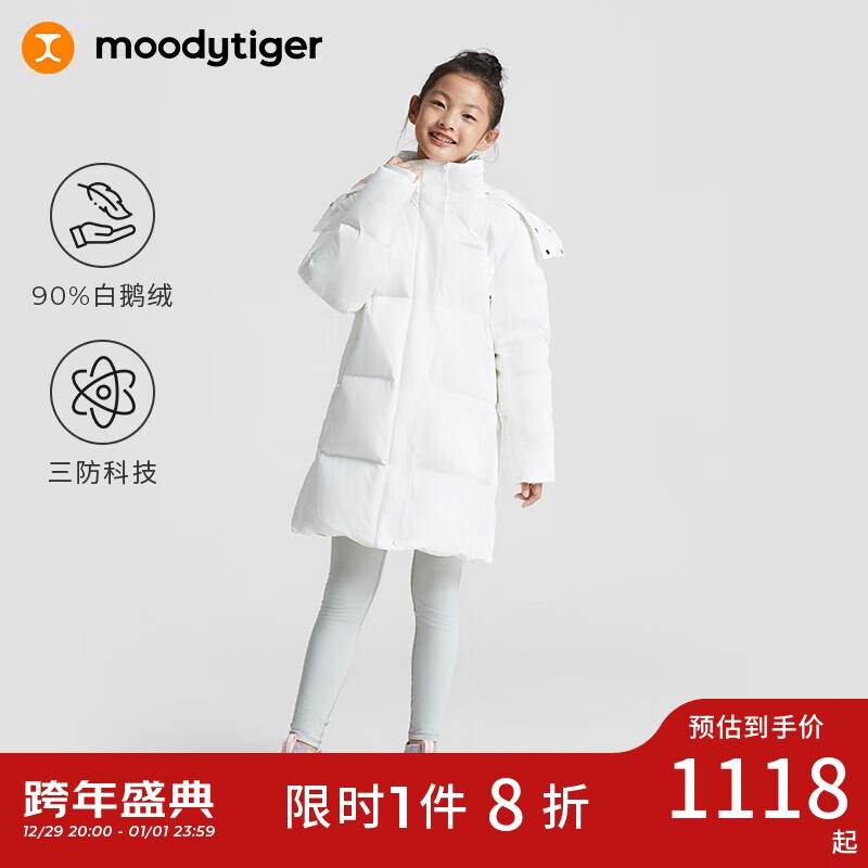 moodytiger儿童羽绒服男女童23冬季中长款三防加厚运动保暖鹅绒服价格:1398.00元!