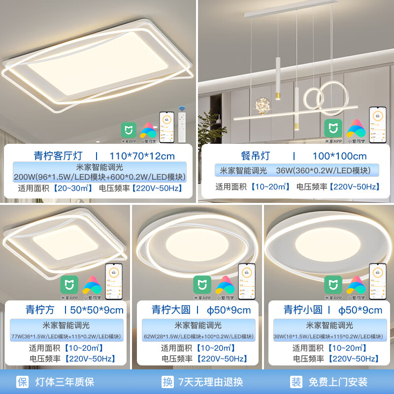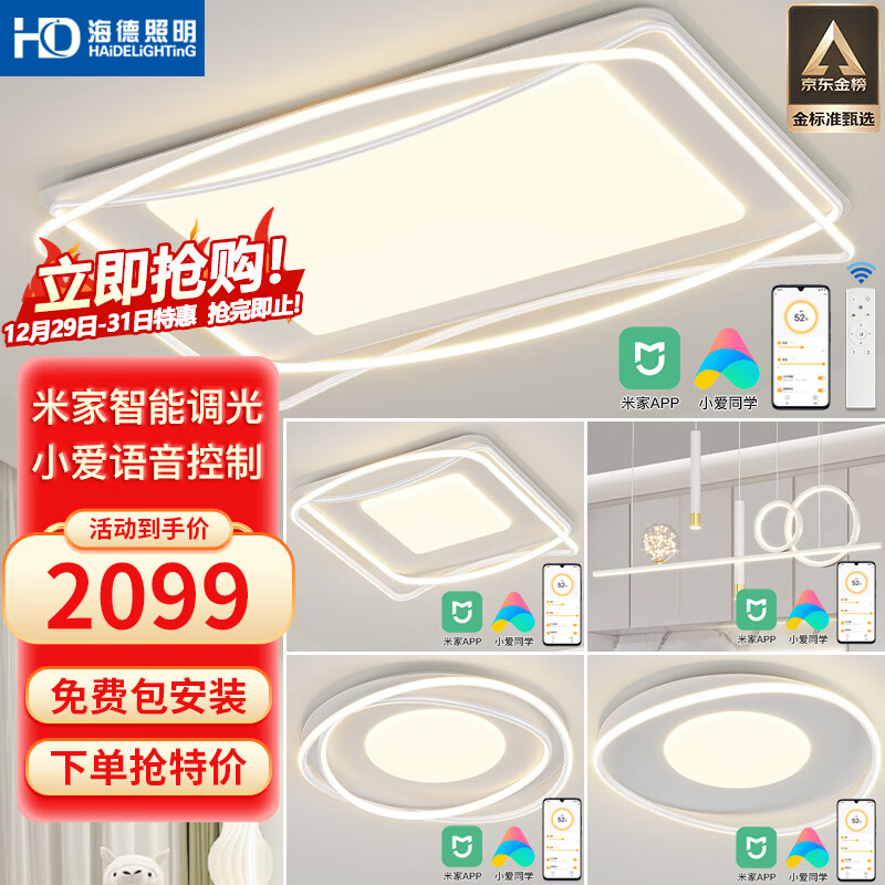 HD米家智能AI语音吸顶灯 led大客厅卧室全屋灯饰 包安装灯具套餐A价格:2699.00元!