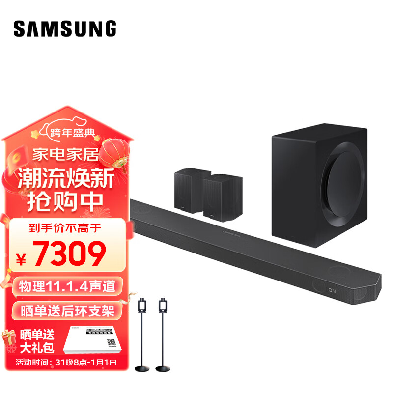 三星(SAMSUNG)Q990C 11.1.4杜比全景声 回音壁 soundbar 家庭影院 无线环绕低音炮 蓝牙 电视音响 投影价格:7309.00元!