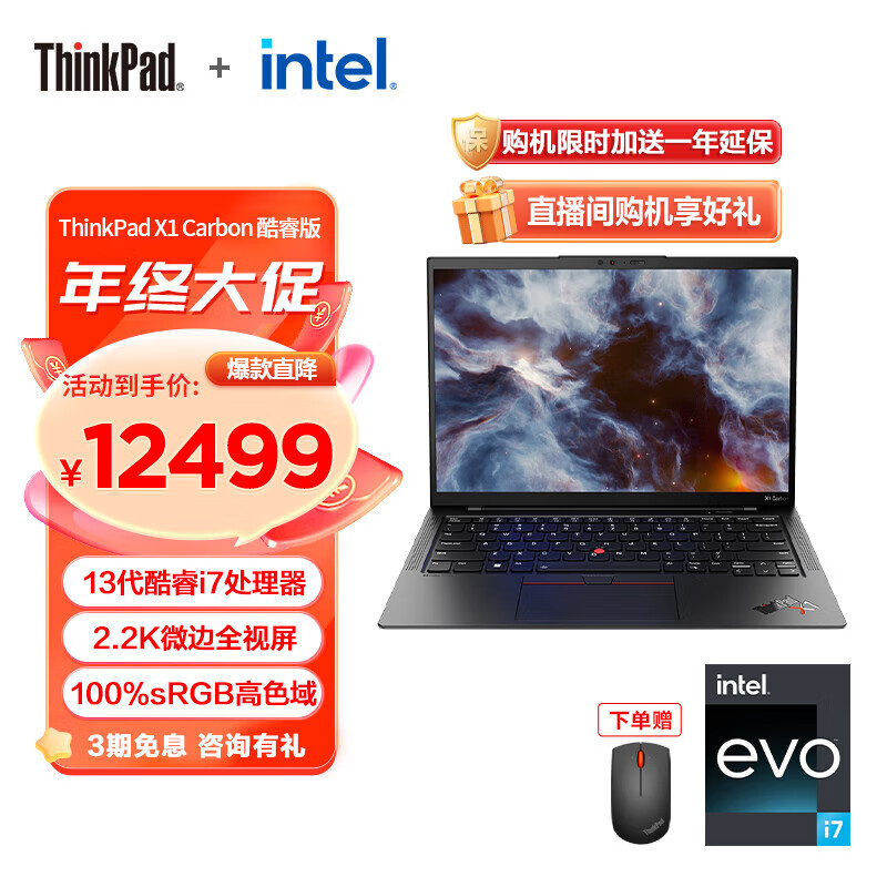 ThinkPad X1 Carbon 联想 14英寸高性能商务轻薄笔记本电脑13代英特尔酷睿处理器LTE全时互联 13代i7 16G 512G 2.2K 3ACD价格:12499.00元!