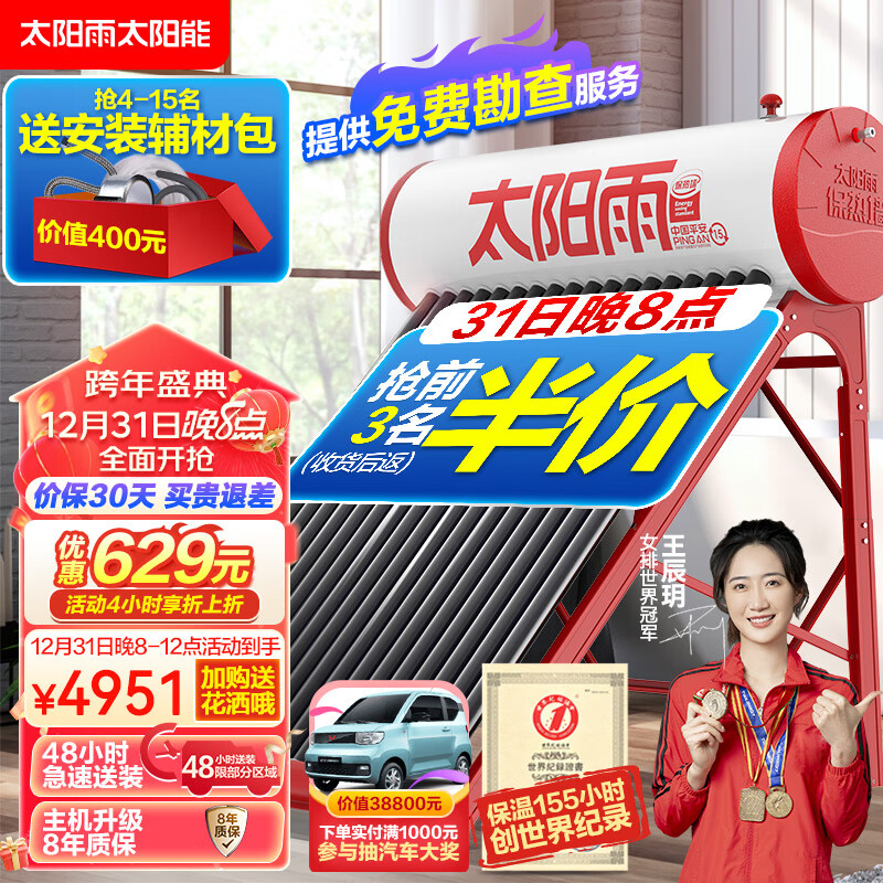 太阳雨 (Sunrain)太阳能热水器家用保热墙一级能效 A无电系列36管265L价格:5580.00元!