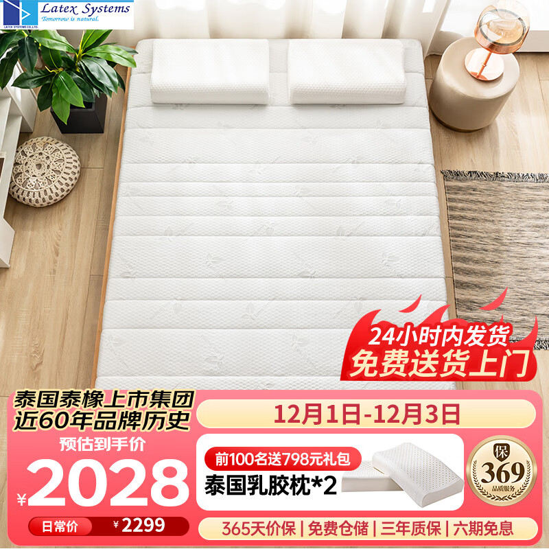 Latex Systems泰国原装进口乳胶床垫 94%含量榻榻米床褥子 双人1.5米2米5cm薄价格:2428.00元!