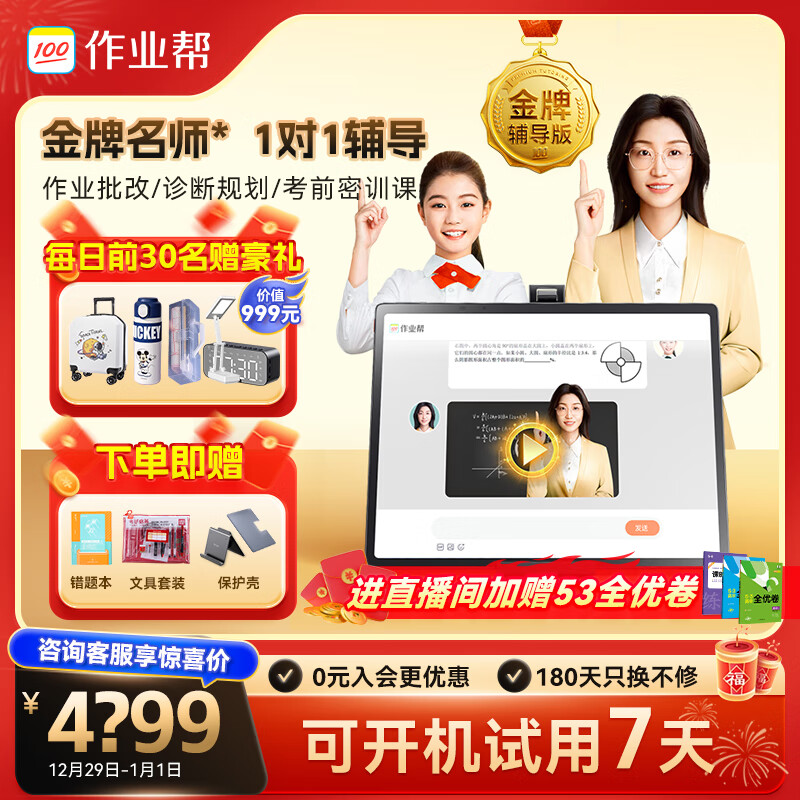 作业帮大屏学习机X28 金牌辅导幼小初高学习平板电脑家教机 1对1辅导 考前密训课 第3代护眼屏13.7'' 8+256G价格:4999.00元!