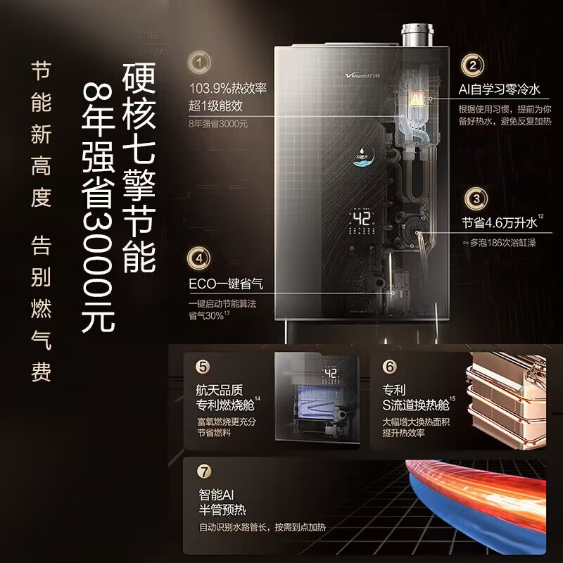 4、对比了好几个牌子还是决定选老品牌万和,很好的一款产品,外观方正,颜值高,体积小,性价比也高。专门选的一级节能,一年下来燃气费省不少钱。看中零冷水的这个功能,安装师傅也给安装好了。物流很快,小县城晚上下的单,第二天上午就给安装好了。