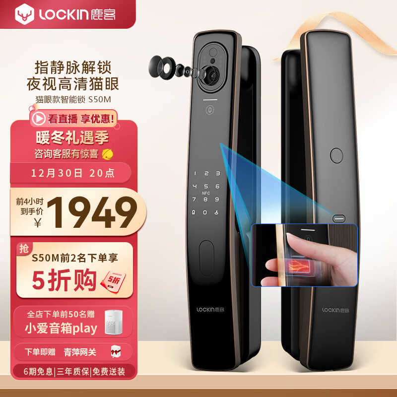 鹿客(LOOCK)S50M可视猫眼指静脉智能门锁密码指纹电子锁支持APP智联价格:3299.00元!