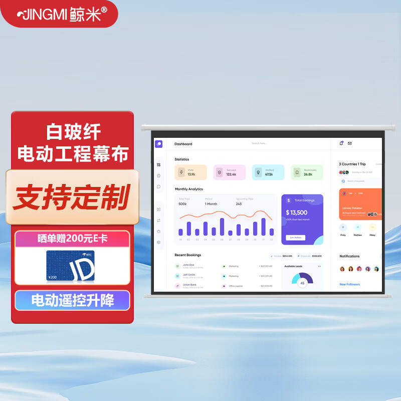 鲸米(JINGMI)电动投影幕布250英寸4:3工程巨幕D5 Pro高清白玻纤影院办公大型投影仪投影机屏幕价格:8499.00元!