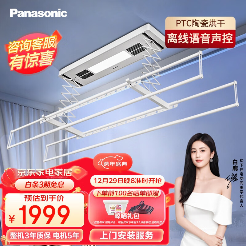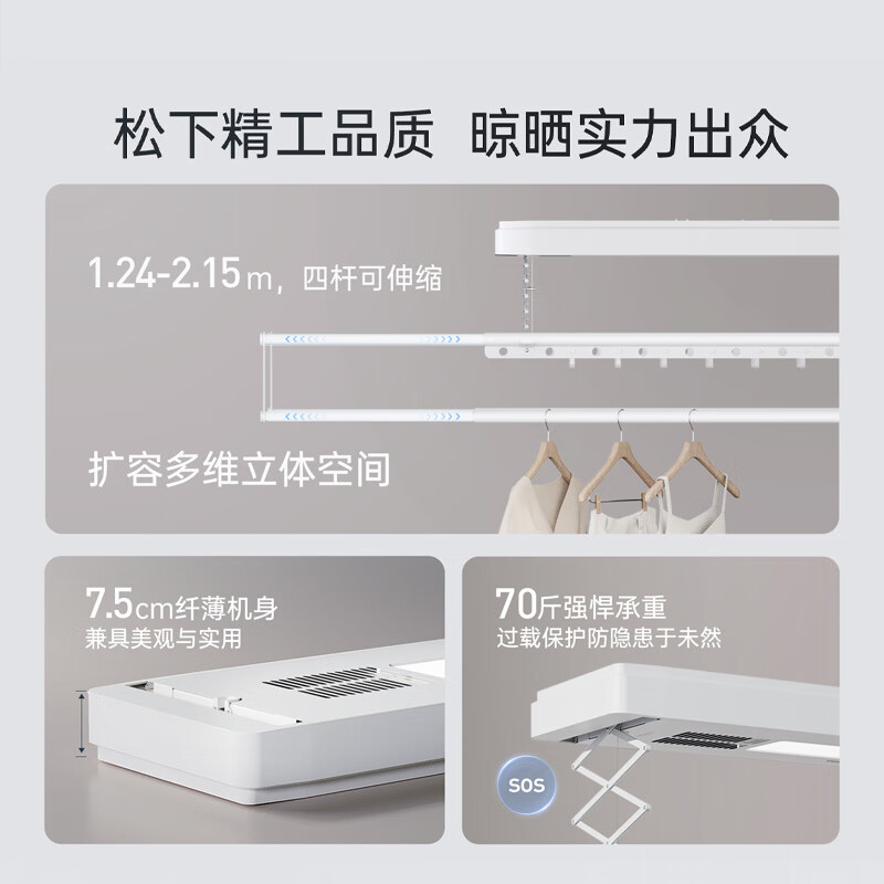 松下(Panasonic)电动智能烘干风干语音超薄嵌入式隐形藏晾衣架LED照明声控晒杆机价格:2279.00元!