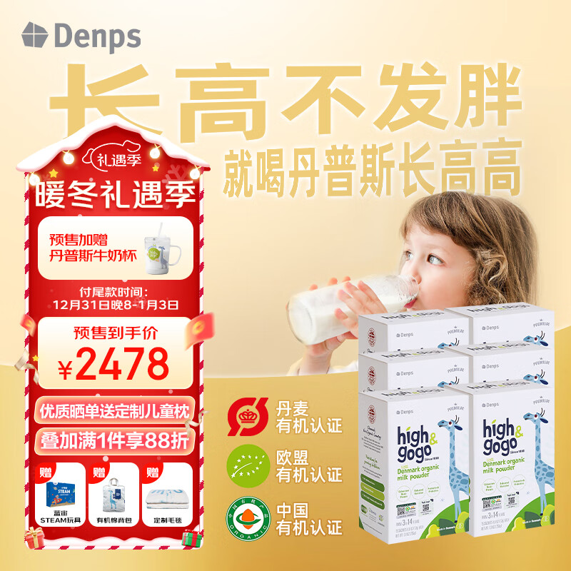 丹普斯 奶粉 长高高有机儿童奶粉 营养消化吸收 骨骼发育 255g*6盒价格:2478.00元!