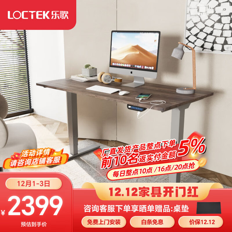 乐歌电动升降桌电脑桌站立办公学习桌写字书桌E5S/1.6m灰胡桃木色套装价格:2399.00元!