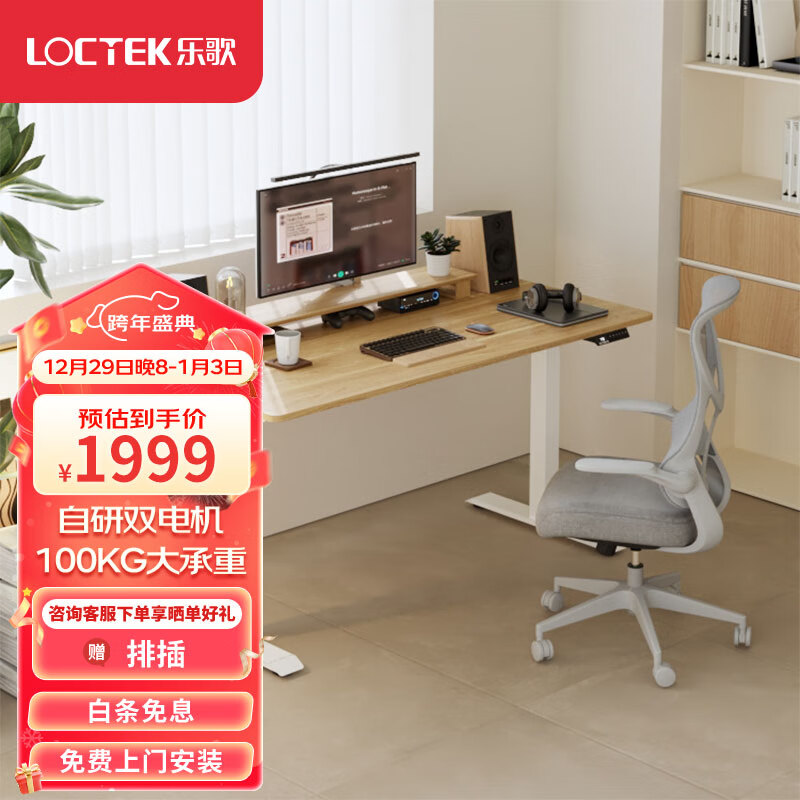 乐歌电动升降桌电脑桌双电机站立办公家用写字书桌 E3/1.4m原木色套装价格:2209.00元!