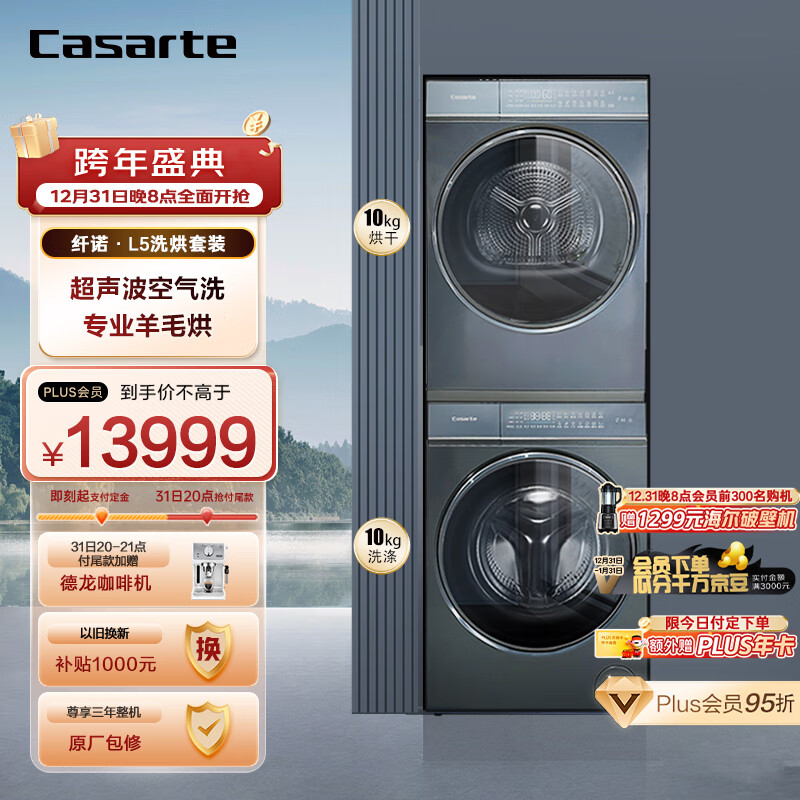 卡萨帝(Casarte)纤诺和美洗烘套装 直驱滚筒洗衣机全自动+热泵烘干机 匀蒸烘 以旧换新 C1 D10L5ELU1+CGQ 10FL5EU1价格:14698.00元!
