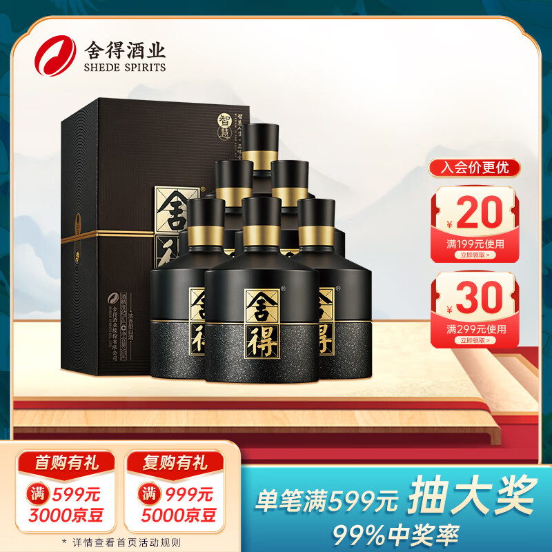 舍得 智慧舍得 浓香型白酒 52度 500ml*6瓶 整箱装价格:4008.00元!