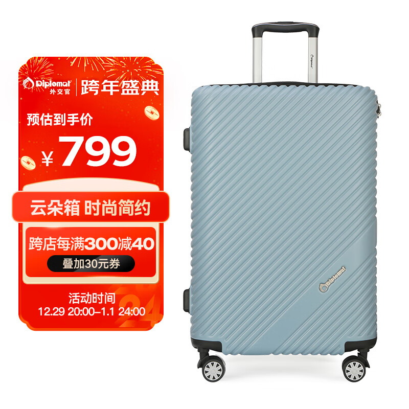 Diplomat外交官大容量行李箱28英寸拉杆箱子男女密码云朵旅行箱TC-23254蓝价格:949.00元!