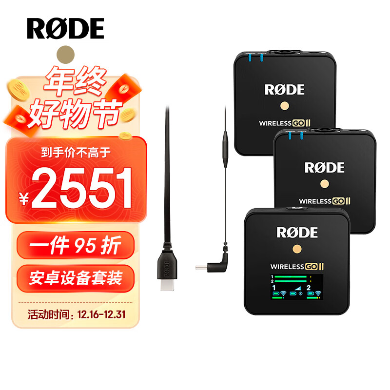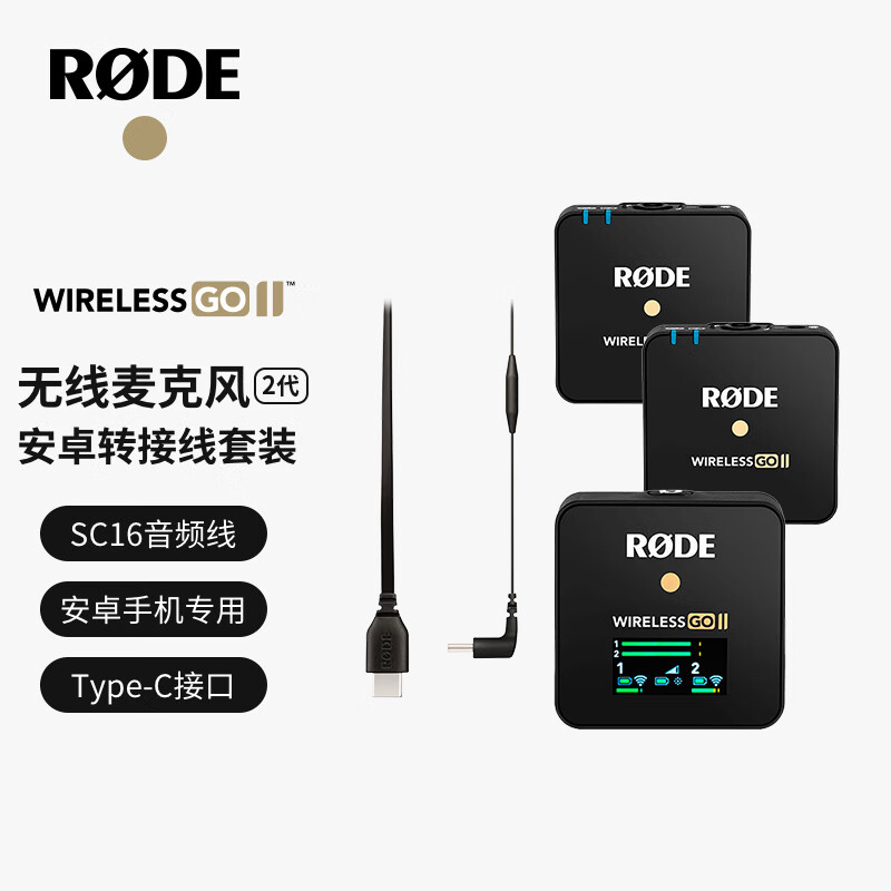 RODE罗德Wireless GO II 无线领夹麦克风一拖二直播录音采访VLOG相机手机专业收音话筒+(SC16安卓手机套装)价格:2685.00元!