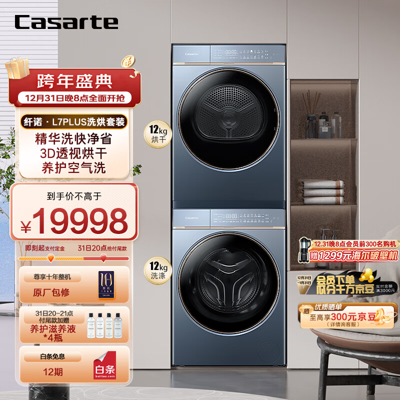 卡萨帝(Casarte)纤诺L7洗烘套装 精华洗滚筒全自动+双擎热泵烘干机 呼吸窗 3D透视烘干CGY 12FL7EU1+C1 DN12L7ELU1价格:19998.00元!