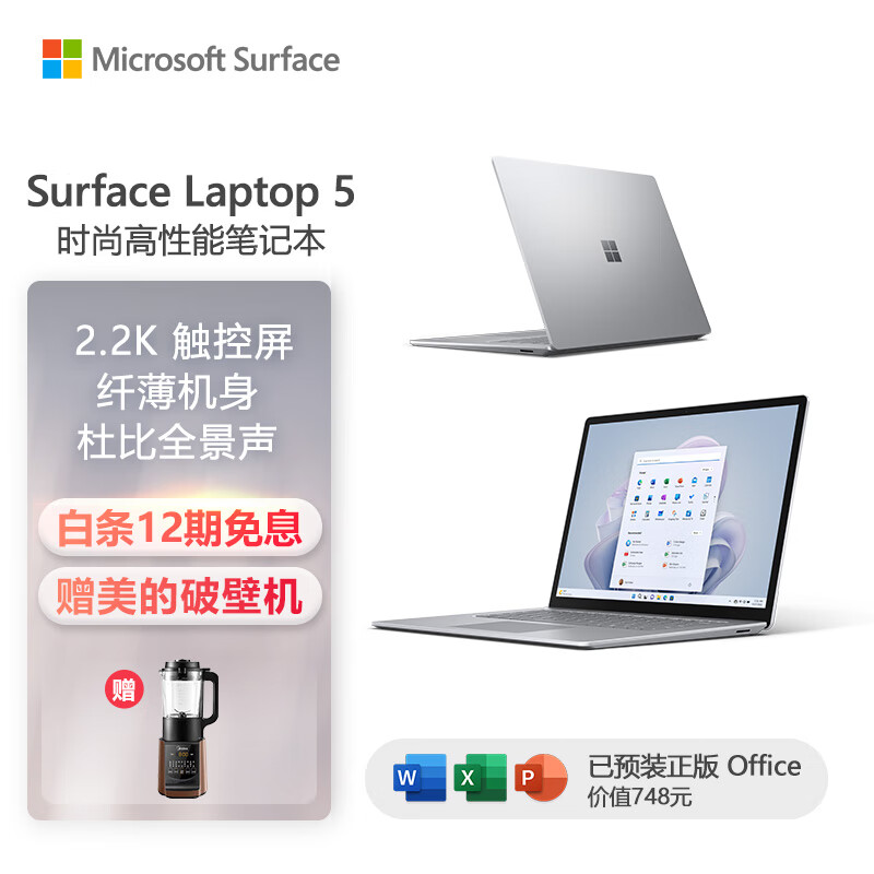 微软Surface Laptop 5 笔记本电脑 i7 8G+512G 亮铂金 Evo认证15英寸2.2K高色域触控屏 办公本价格:11688.00元!