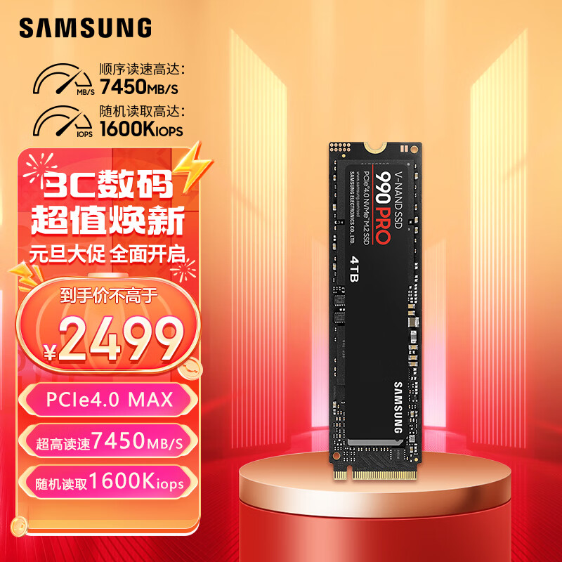 三星(SAMSUNG)4TB SSD固态硬盘 M.2接口(NVMe协议PCIe 4.0 x4) 990 PRO (MZ-V9P4T0BW)价格:2499.00元!