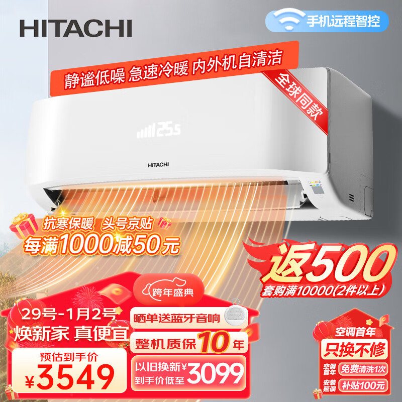 日立(HITACHI)白熊君新3级能效 1匹全直流变频冷暖空调挂机低耗节能舒适睡眠智能wifi 以旧换新RAK/C-CH09PHAPC价格:3699.00元!