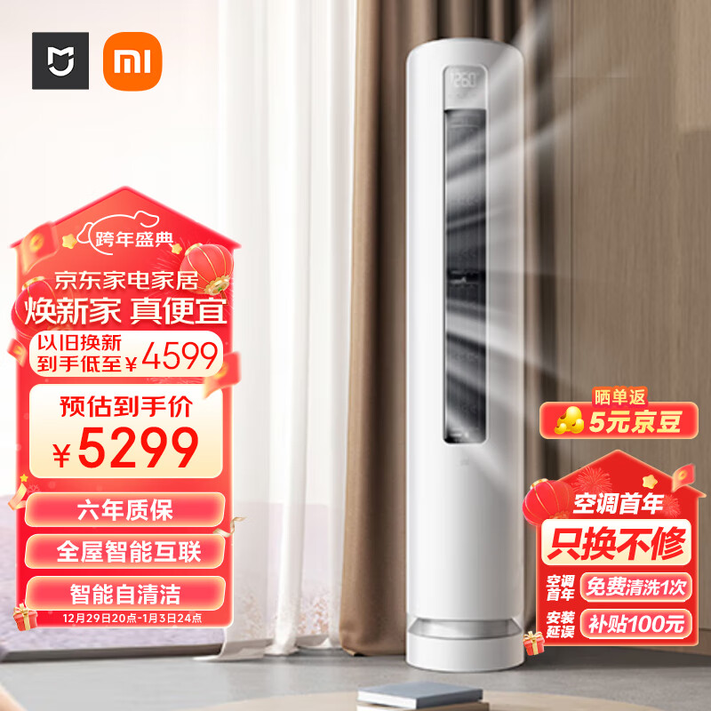 小米3匹 新一级能效 变频冷暖 柔风风感 智能自清洁 客厅圆柱空调立式柜机 KFR-72LW/R1X1 以旧换新价格:5299.00元!