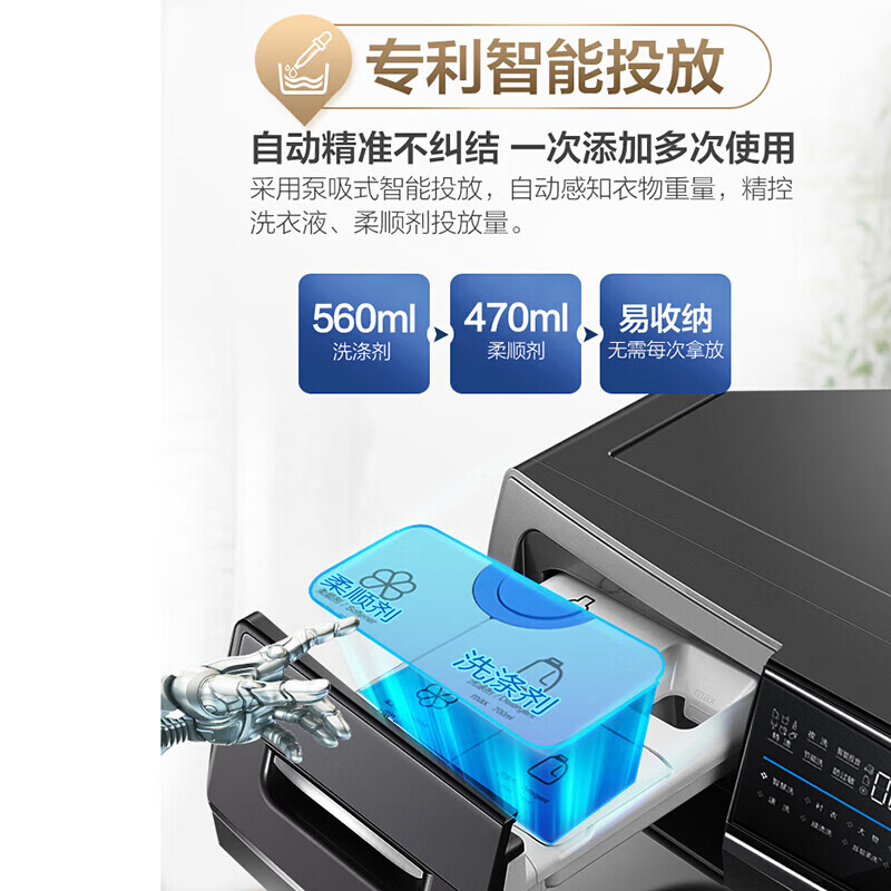 4、外形外观:颜色大气,正是我喜欢的颜色洗净效果:洗出来的衣服很干净,很柔软除菌效果:刚买回,还不知道除菌效果测试,日后再评容量大小:10公斤,足够家里用了,四件套一起放入也很轻松。