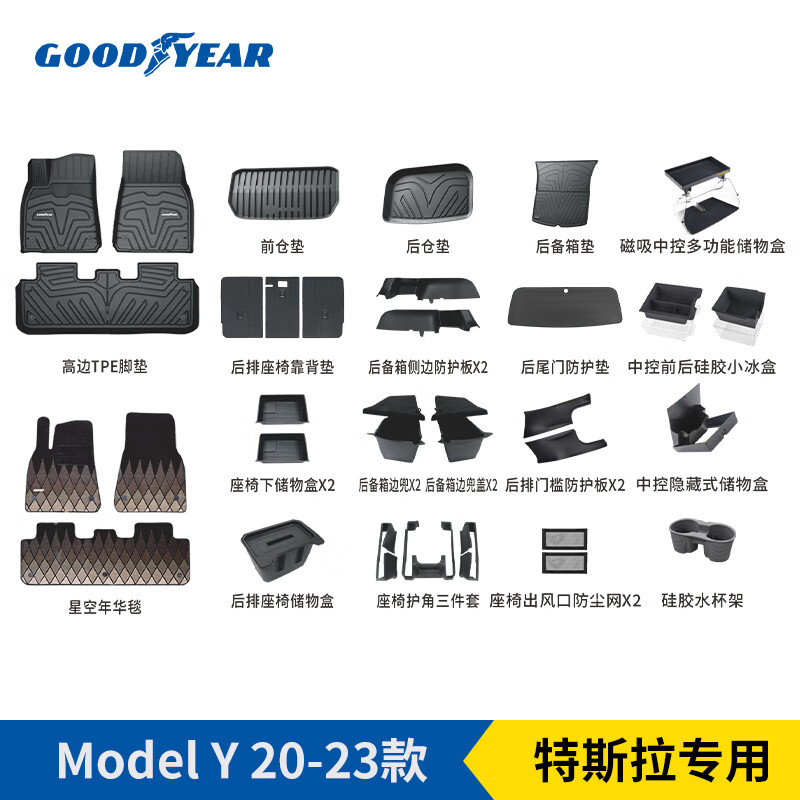 固特异(Goodyear)高边全TPE专用于特斯拉ModelY脚垫环保定制新车壕华大礼包34件套价格:3419.00元!