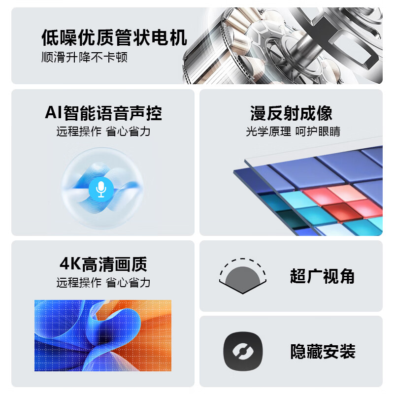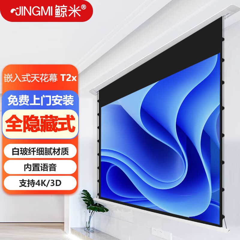 鲸米(JINGMI)投影幕布T2X白玻纤133英寸16:9隐藏嵌入式天花幕布电动拉线遥控语音家用客厅卧室投影仪屏幕价格:3599.00元!