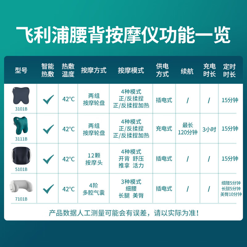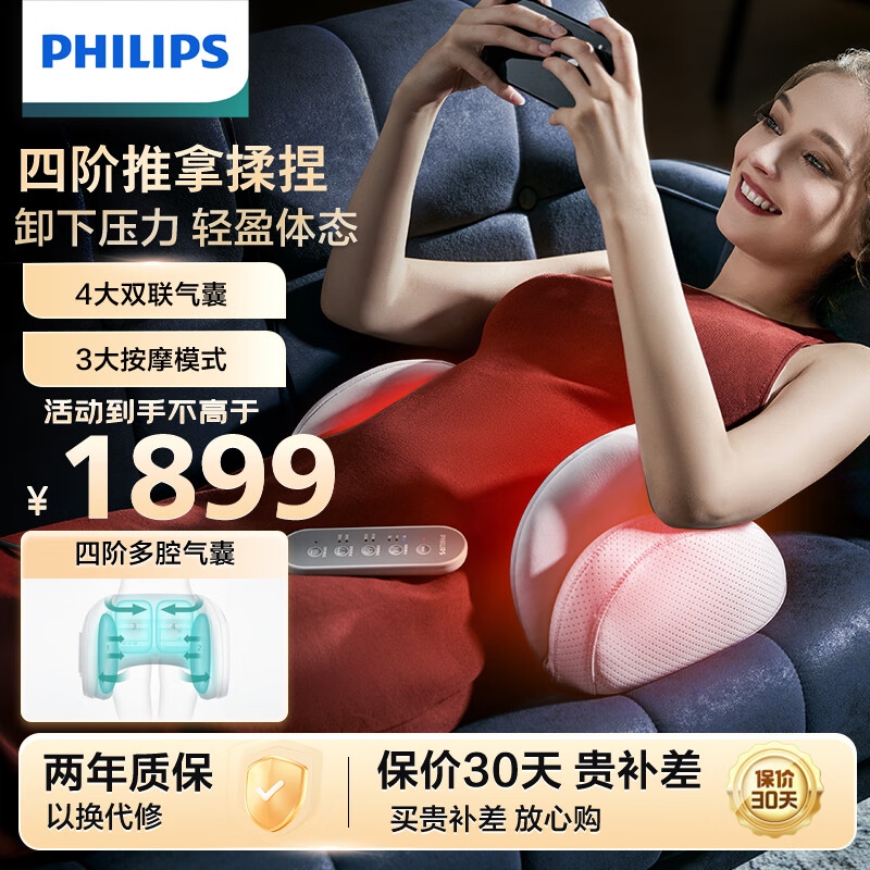 飞利浦腰部按摩器 多功能背部腰部腿部热敷按摩仪 电动腰椎按摩仪器按摩靠垫 7101B价格:2219.00元!