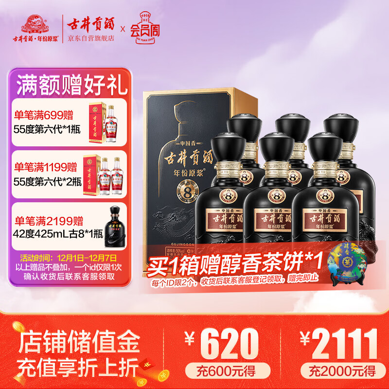 古井贡酒 年份原浆中国香古8 浓香型白酒 50度500ml*6瓶 整箱装(含礼袋)价格:2176.47元!